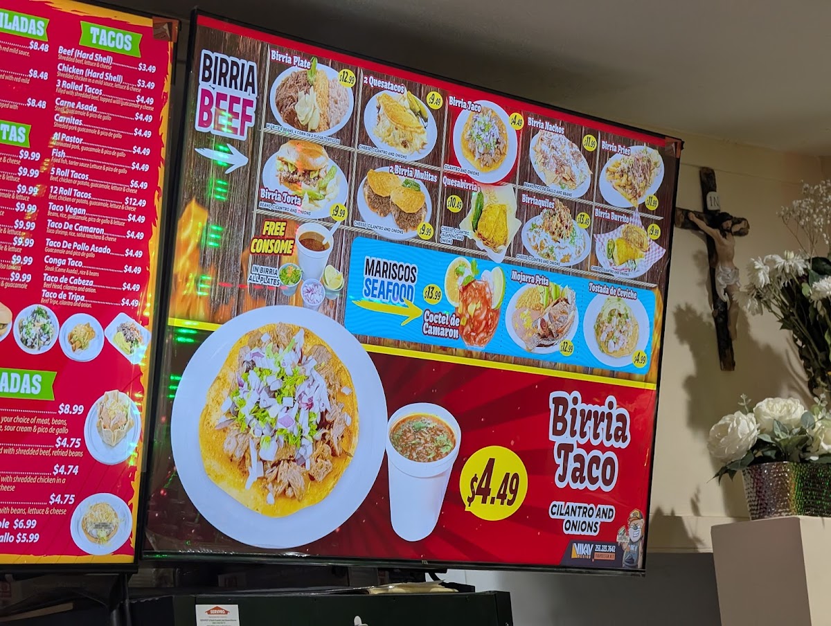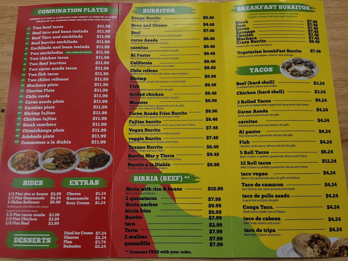 Highlights include generously filled burritos like the Monster Burrito and Carne Asada Burrito, which make a great choice for those looking for something substantial. Breakfast options feature a variety of burritos packed with ingredients such as chorizo, bacon, or vegetarian-friendly fillings, making them a welcoming start to the day. For a more adventurous palate, dishes like Tacos de Tripa or Barbacoa bring a touch of regional Mexican flair.