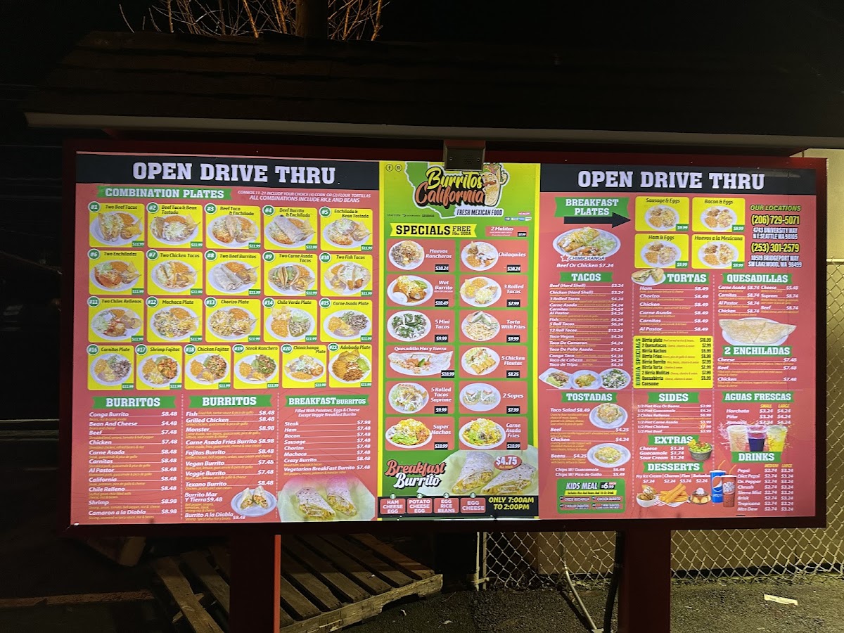 The menu at Burritos California offers a straightforward, satisfying collection of Mexican favorites with a focus on hearty burritos and flavorful plates. Perfect for casual meals any time of day, whether you’re stopping by for a quick bite or settling in for a relaxed dinner, the menu balances classic comfort with bold, authentic flavors.